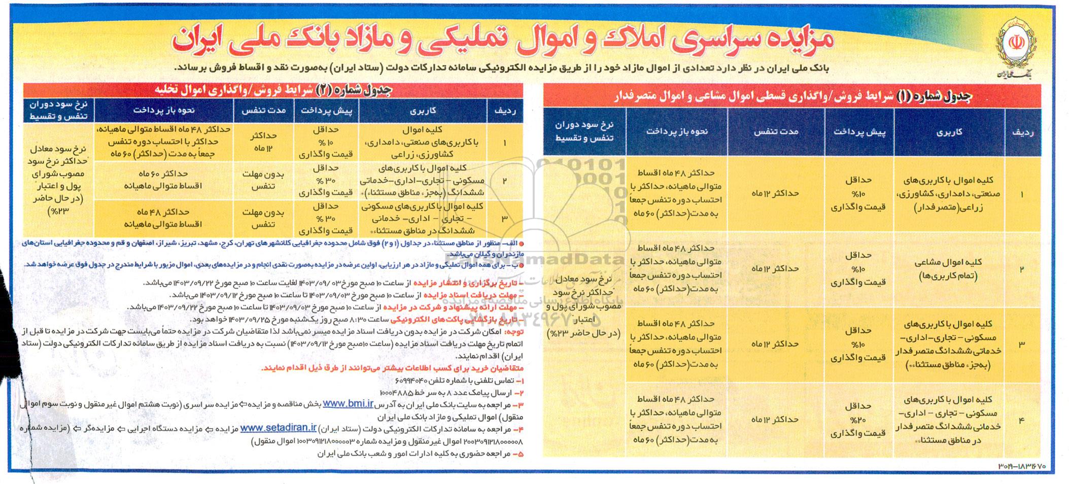 مزایده سراسری املاک و اموال تملیکی و مازاد بانک ملی ایران , مزایده سراسری املاک و اموال تملیکی و مازاد بانک ملی ایران