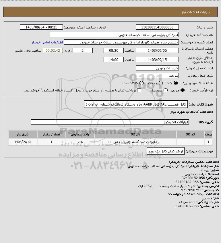 استعلام کابل هدست OAEکابل AABR(ویژه دستکاه غربالگری شنوایی نوزادان ), استعلام کابل هدست OAEکابل AABR(ویژه دستکاه غربالگری شنوایی نوزادان )
