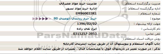 استعلام خرید جرم ریختنی آلومینی, استعلام خرید جرم ریختنی آلومینی