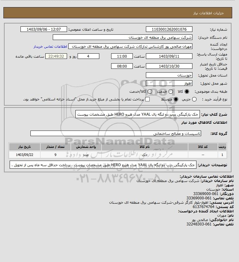 نام سازمان خریدار: شرکت سهامی برق منطقه ای خوزستان