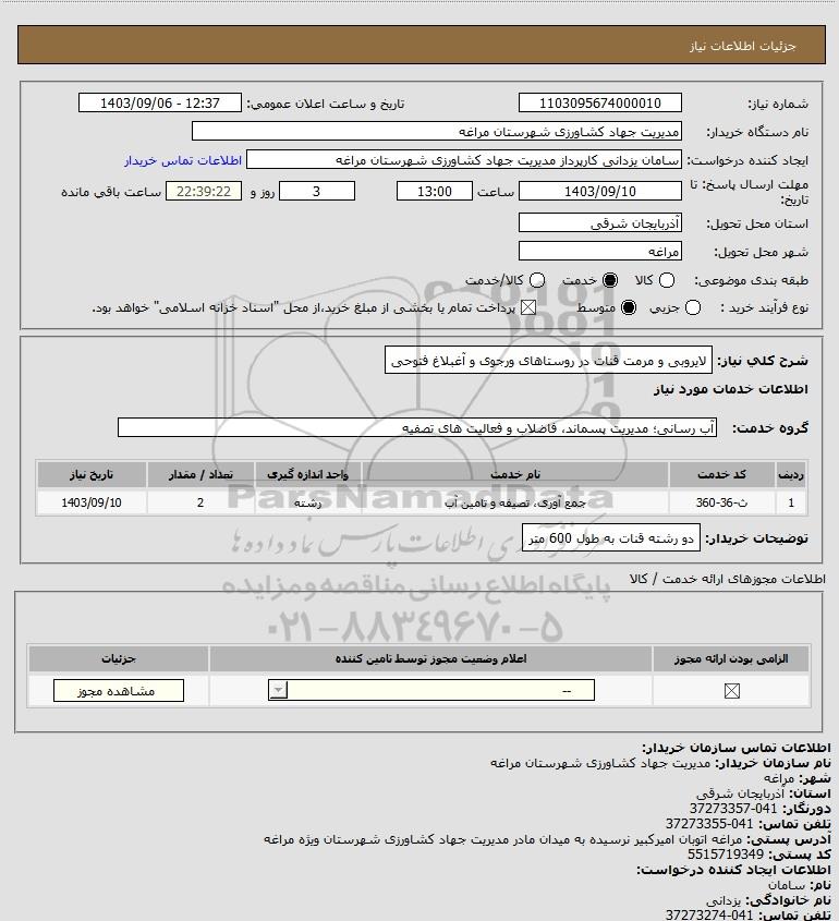 نام دستگاه خریدار:مدیریت جهاد کشاورزی شهرستان مراغه