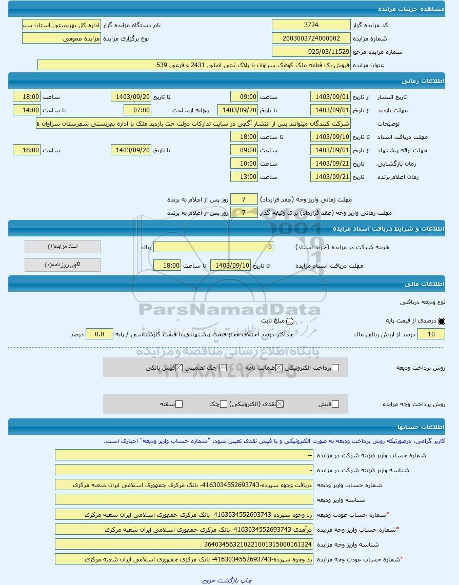 مزایده فروش یک قطعه ملک کوهک سراوان با پلاک ثبتی اصلی 2431 و فرعی 539 -مزایده ساختمان - استان سیستان و بلوچستان, مزایده ، فروش یک قطعه ملک کوهک سراوان با پلاک ثبتی اصلی 2431 و فرعی 539 -مزایده ساختمان - استان سیستان و بلوچستان
