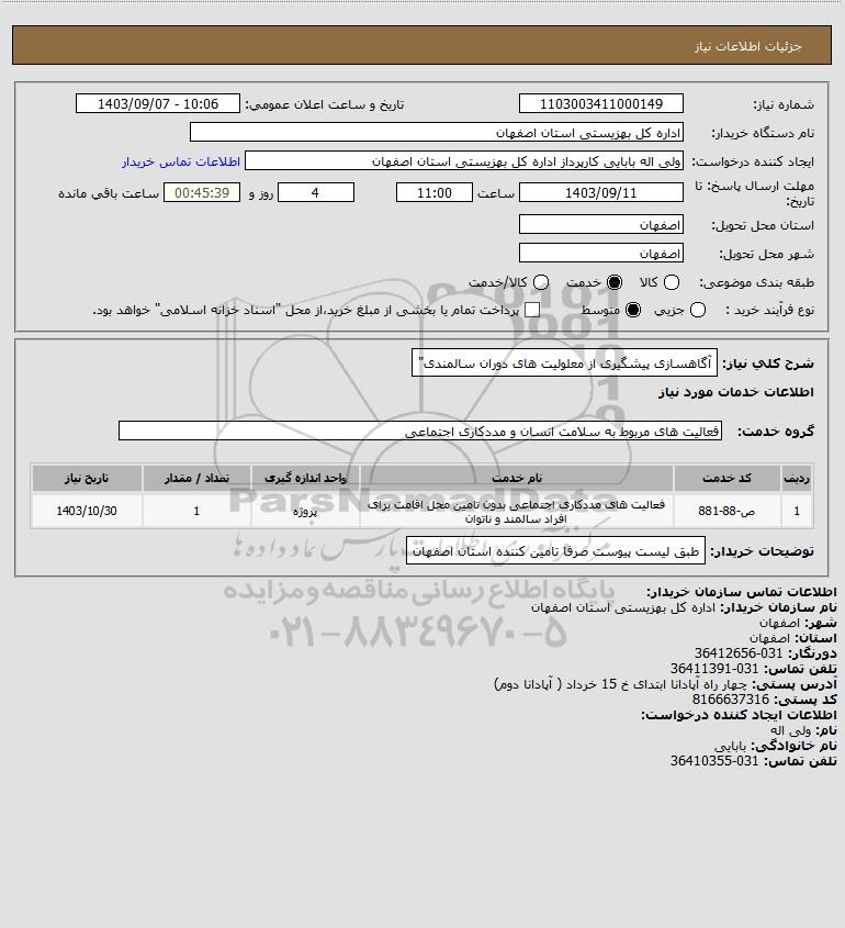 شرح کلی نیاز: آگاهسازی پیشگیری از معلولیت های دوران سالمندی"