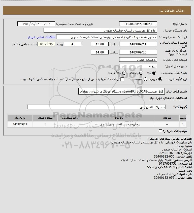 | 1 | -- | ملزومات دستگاه شنوایی سنجی | عدد | 1 | 1403/09/15 |