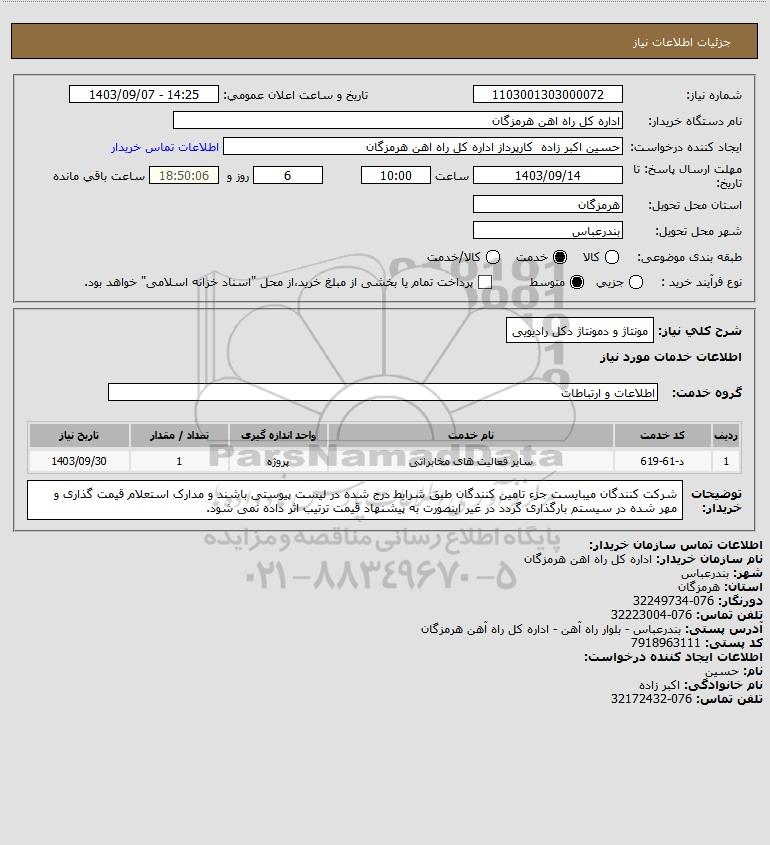 استعلام مونتاژ و دمونتاژ دکل رادیویی, استعلام مونتاژ و دمونتاژ دکل رادیویی