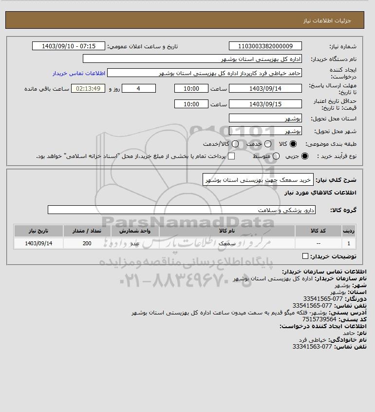 شرح کلی نیاز: خرید سمعک جهت بهزیستی استان بوشهر