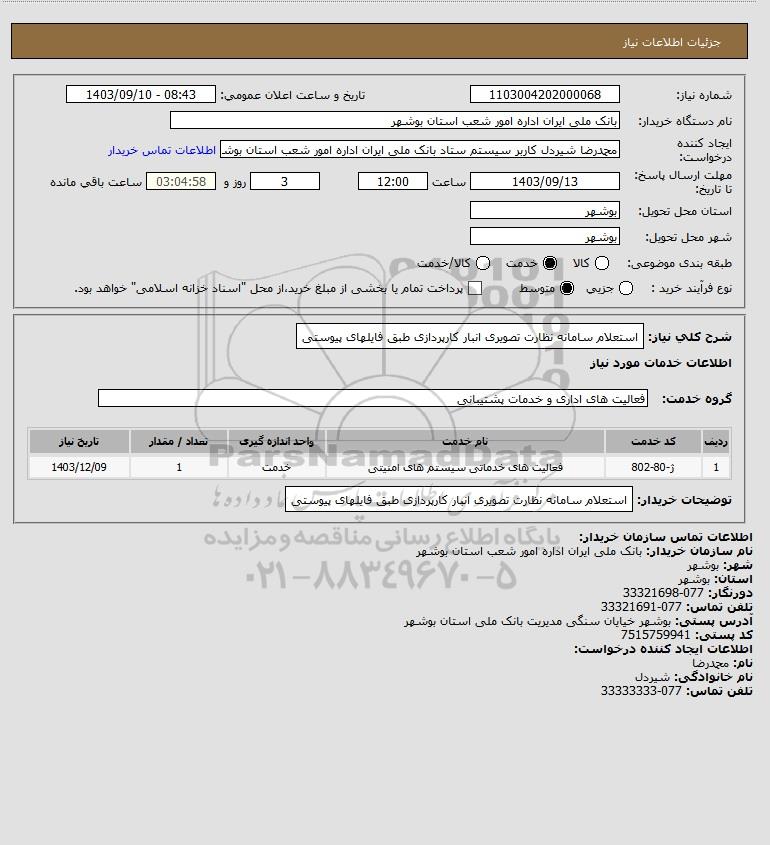 نام دستگاه خریدار:بانک ملی ایران اداره امور شعب استان بوشهر