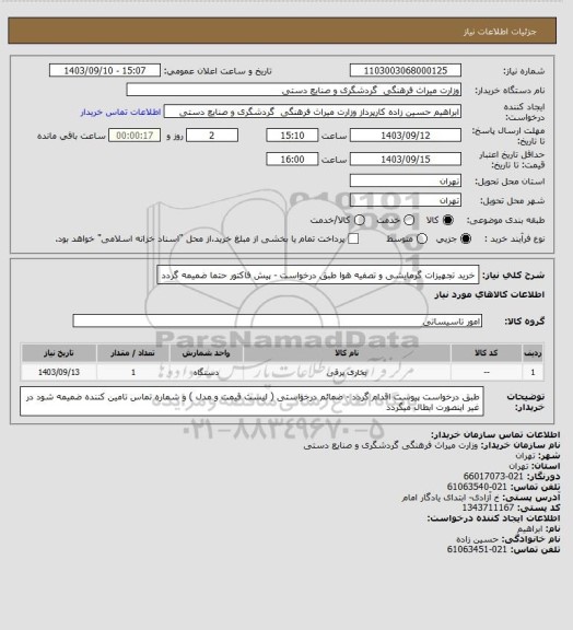 نام دستگاه خریدار:وزارت میراث فرهنگی گردشگری و صنایع دستی