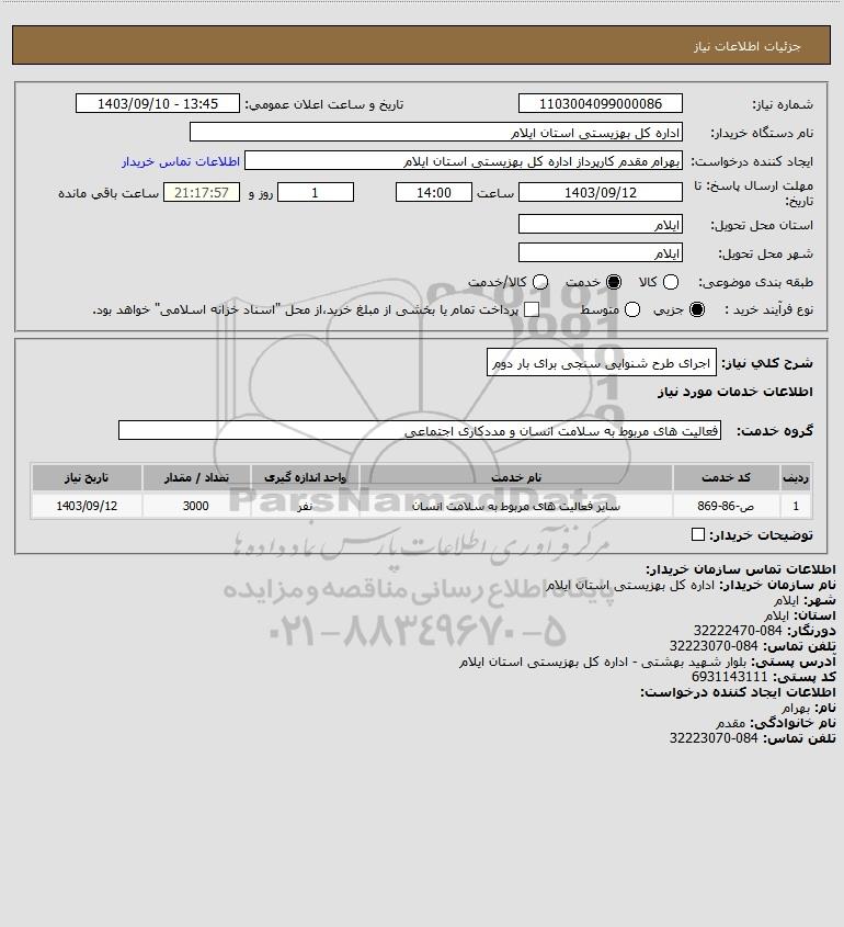 شرح کلی نیاز: اجرای طرح شنوایی سنجی برای بار دوم
