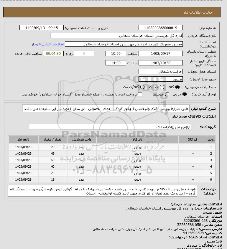 نام دستگاه خریدار:اداره کل بهزیستی استان خراسان شمالی