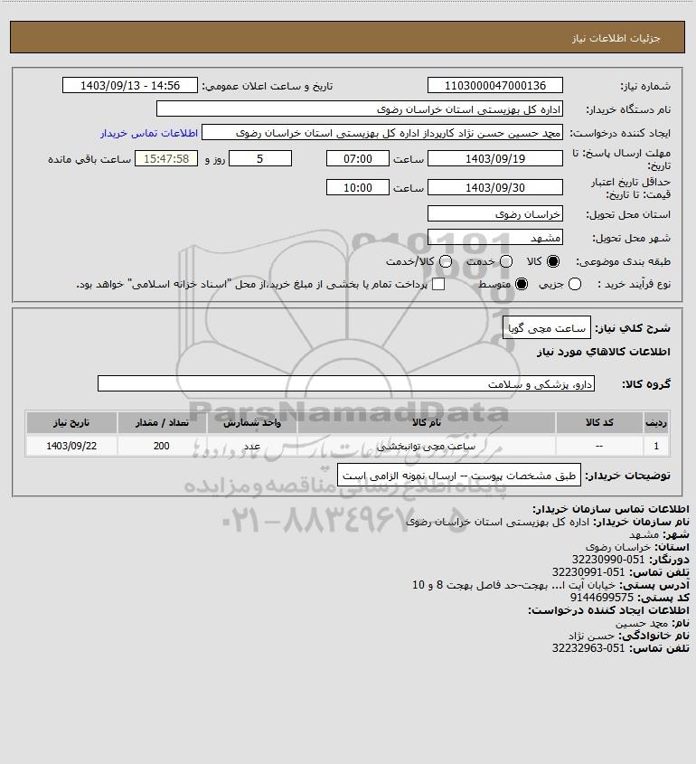 نام سازمان خریدار: اداره کل بهزیستی استان خراسان رضوی