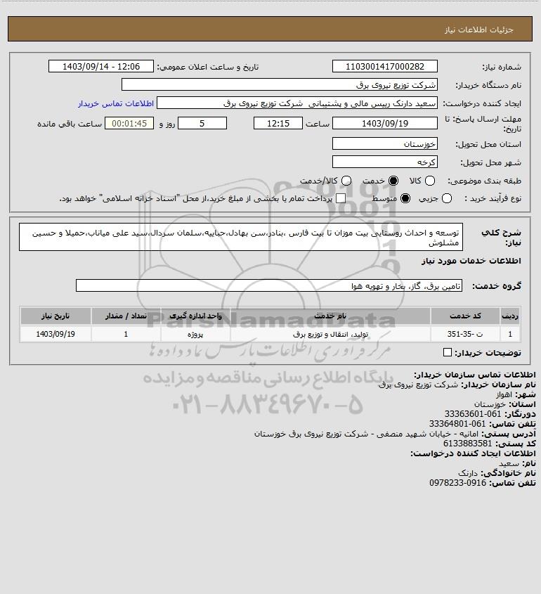 نام دستگاه خریدار:شرکت توزیع نیروی برق