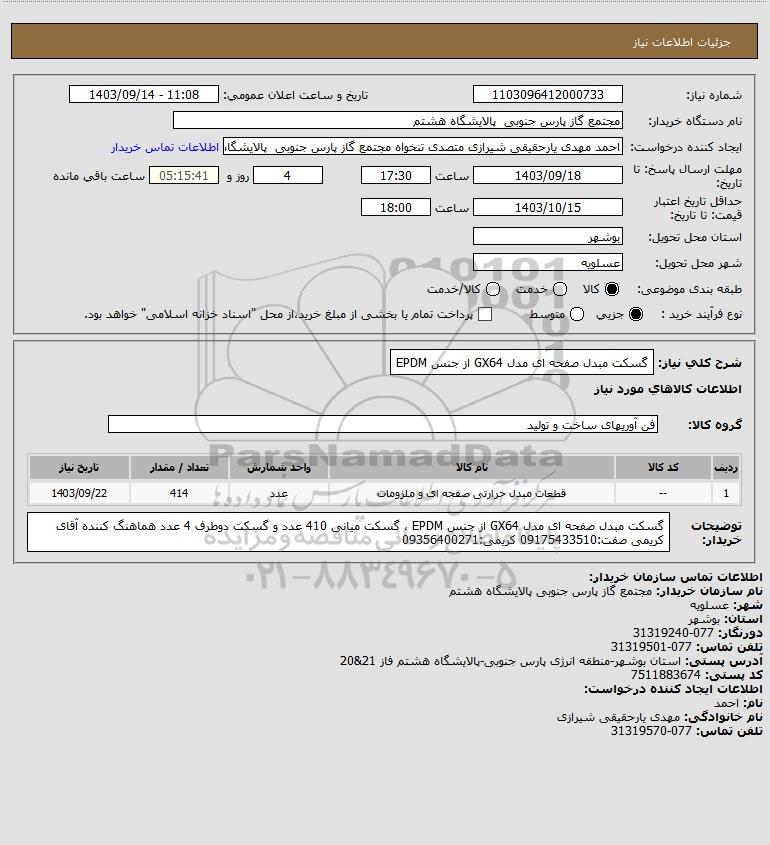 1 -- قطعات مبدل حرارتی صفحه ای و ملزومات عدد 414 1403/09/22