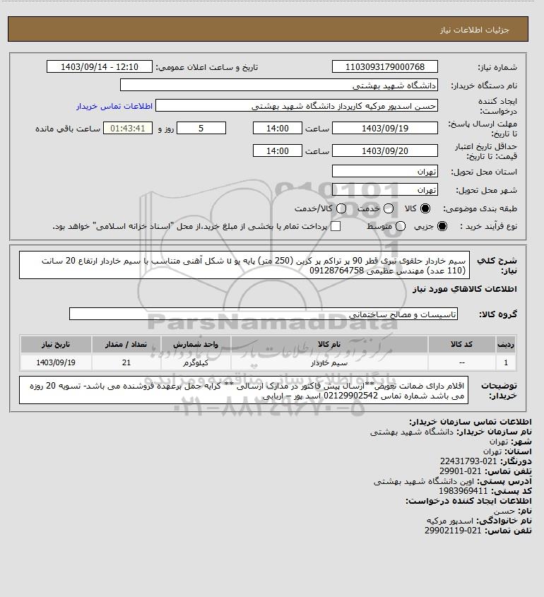 نام دستگاه خریدار:دانشگاه شهید بهشتی