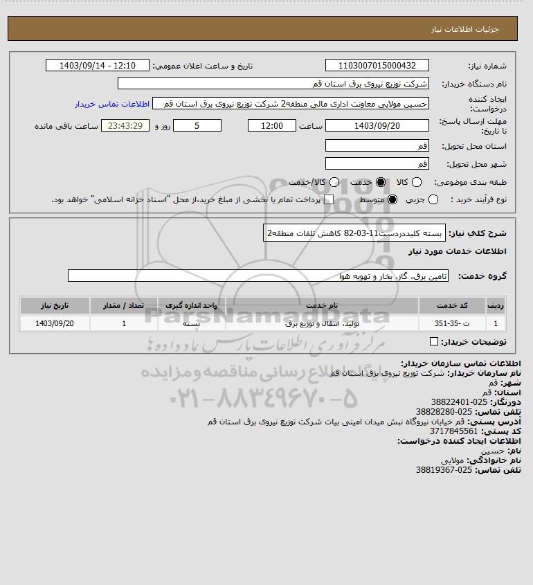 استعلام بسته کلیددردست11-03-82 کاهش تلفات منطقه2, استعلام بسته کلیددردست11-03-82 کاهش تلفات منطقه2