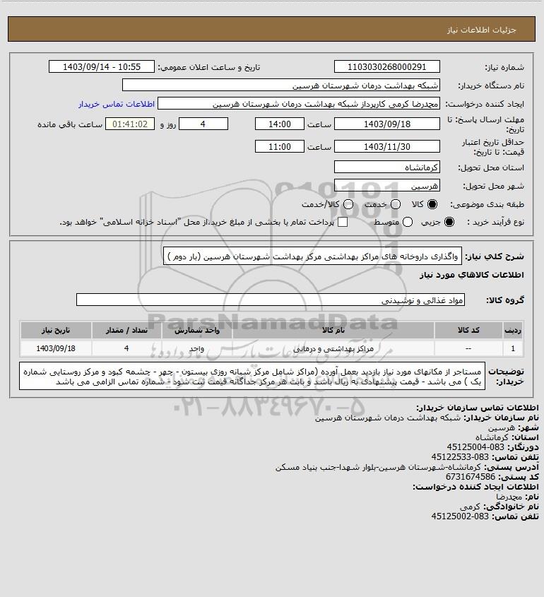 نام دستگاه خریدار:شبکه بهداشت درمان شهرستان هرسین