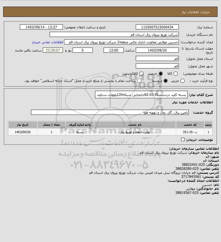 شرح کلی نیاز: بسته کلید دردست01-03-82جابجایی شبکه20کیلوولت سناوند