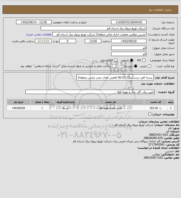 نام دستگاه خریدار:شرکت توزیع نیروی برق استان قم