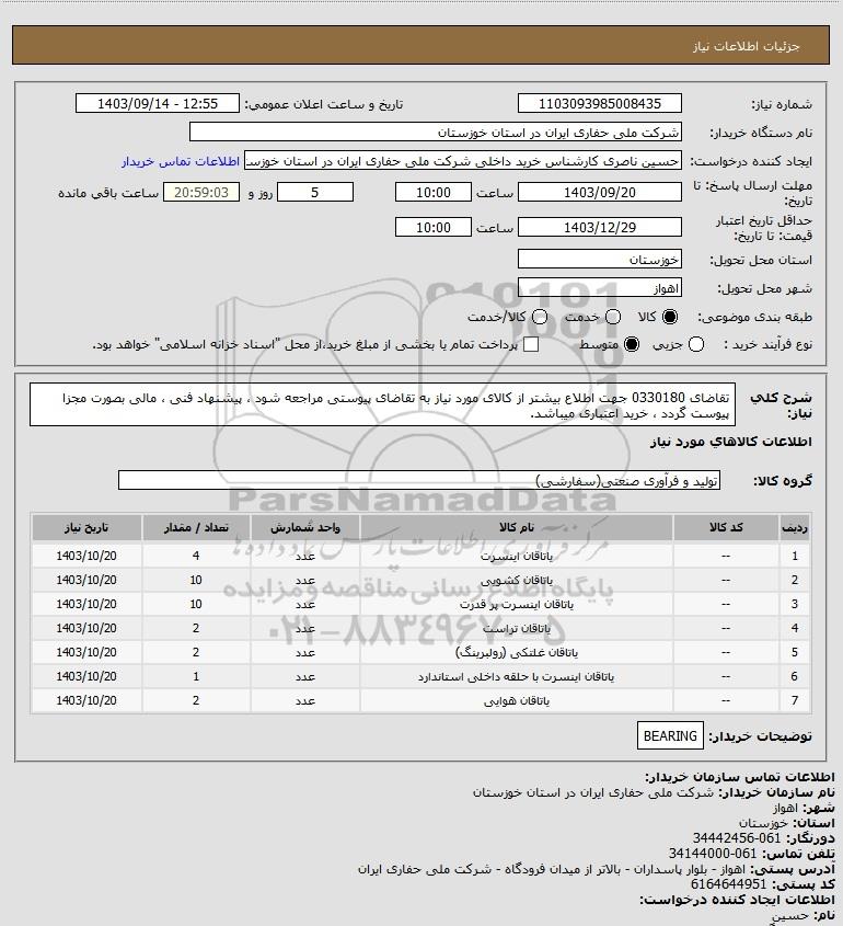 نام دستگاه خریدار:شرکت ملی حفاری ایران در استان خوزستان