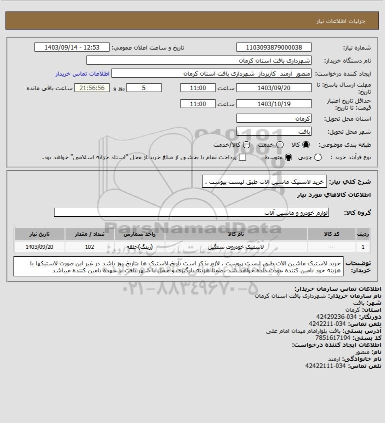 نام دستگاه خریدار:شهرداری بافت استان کرمان
