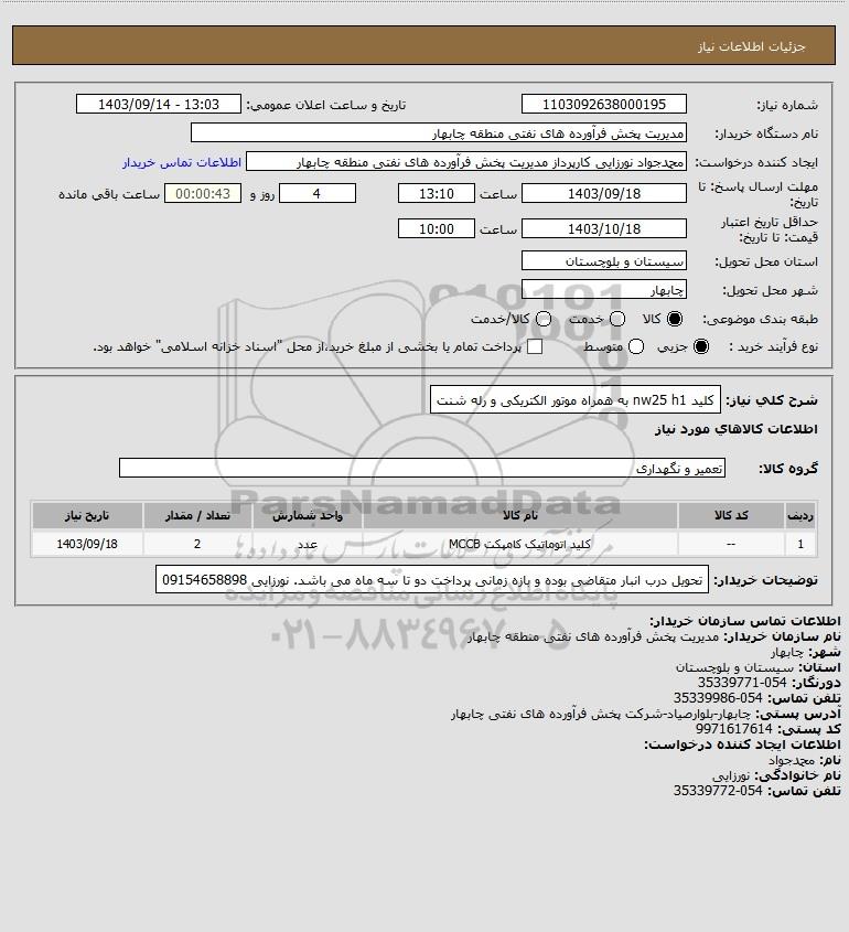 شرح کلی نیاز: کلید nw25 h1 به همراه موتور الکتریکی و رله شنت