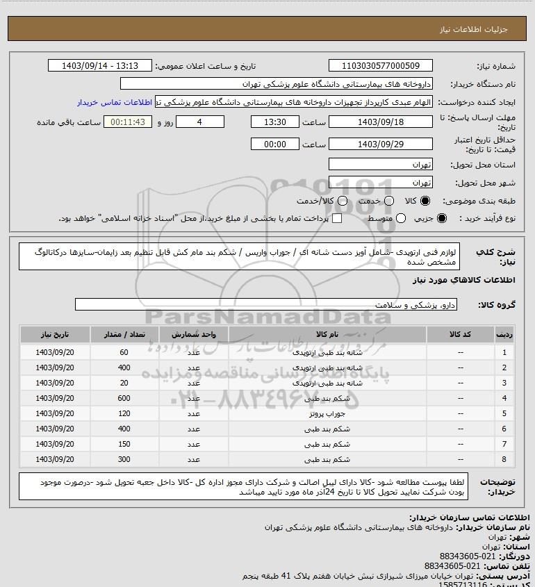 نام دستگاه خریدار:داروخانه های بیمارستانی دانشگاه علوم پزشکی تهران