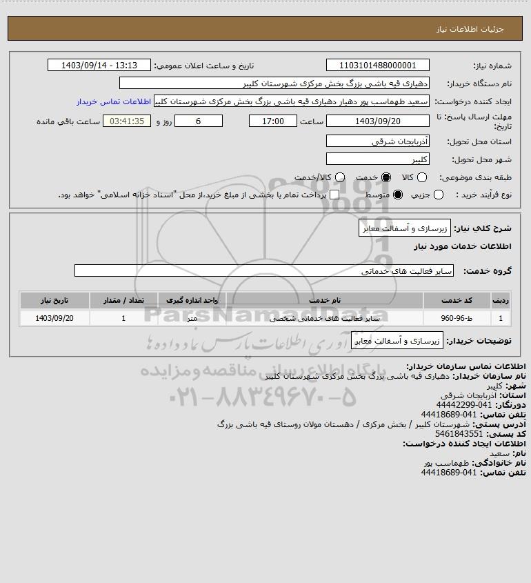 نام سازمان خریدار: دهیاری قیه باشی بزرگ بخش مرکزی شهرستان کلیبر