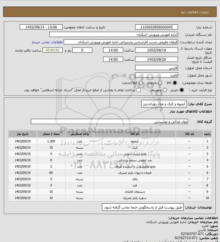 استعلام آبمیوه و کیک و مواد بهداشتی, استعلام آبمیوه و کیک و مواد بهداشتی