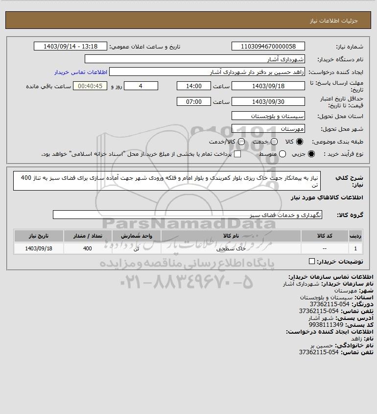 | 1 | -- | خاک سطحی | تن | 400 | 1403/09/18 |