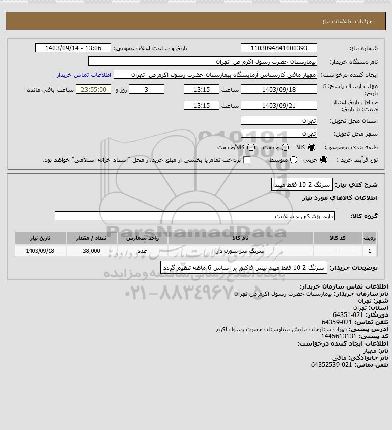 شرح کلی نیاز: سرنگ 2-10 فقط میبد