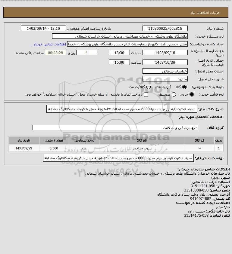 نام سازمان خریدار: دانشگاه علوم پزشکی و خدمات بهداشتی درمانی استان خراسان شمالی