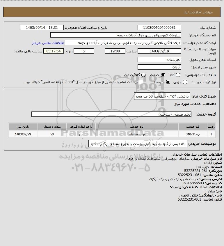 شرح کلی نیاز: پارتیشن mdf و سکوریت 50 متر مربع