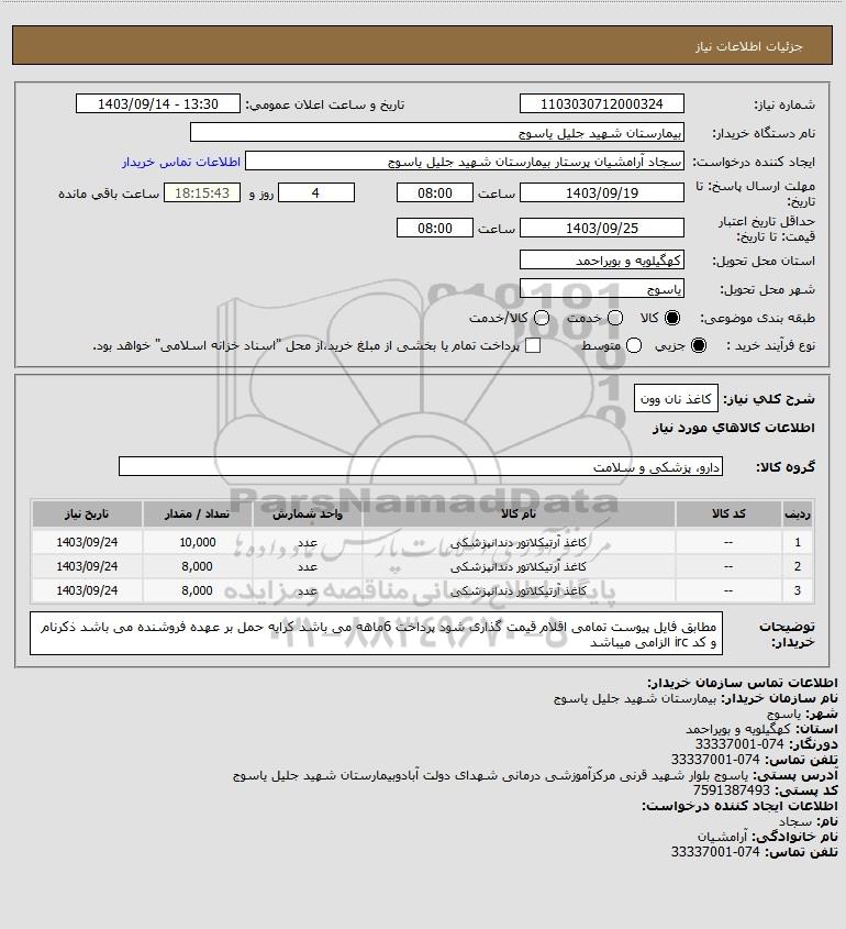 نام دستگاه خریدار:بیمارستان شهید جلیل یاسوج