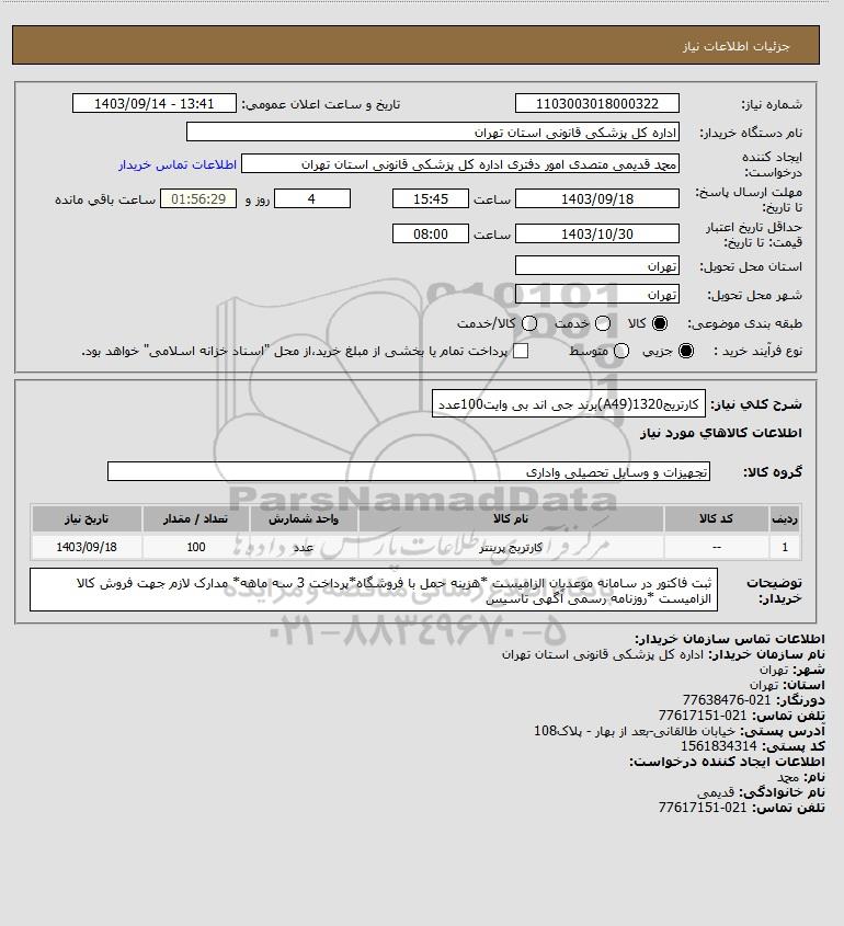نام دستگاه خریدار:اداره کل پزشکی قانونی استان تهران