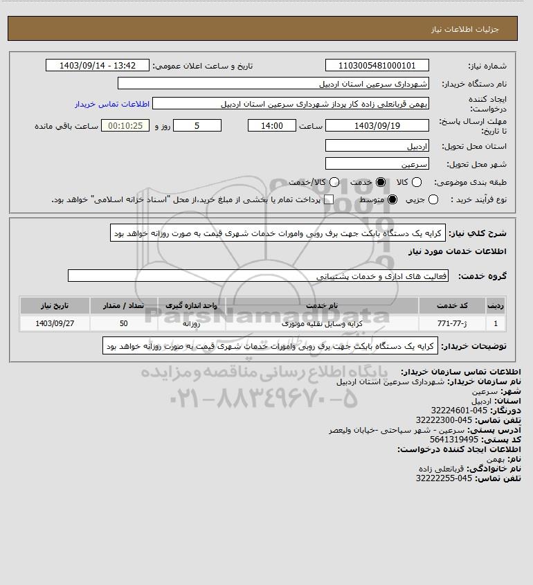 نام سازمان خریدار: شهرداری سرعین استان اردبیل
