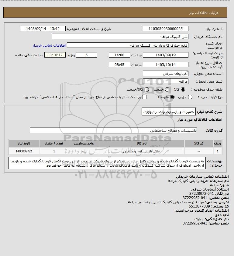 نام دستگاه خریدار:پلی کلینیک مراغه
