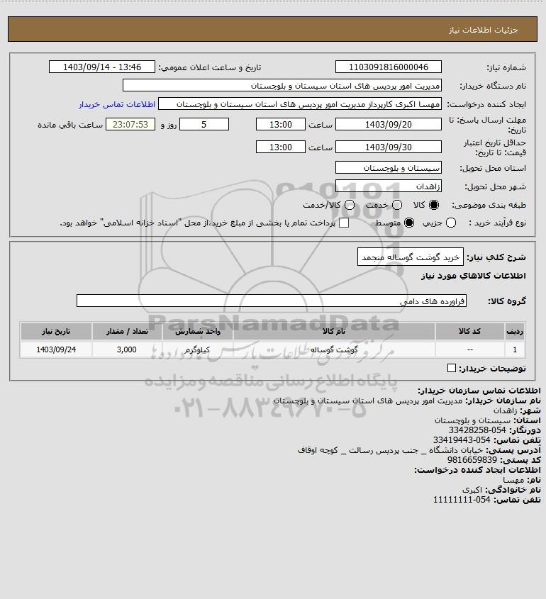 شرح کلی نیاز: خرید گوشت گوساله منجمد