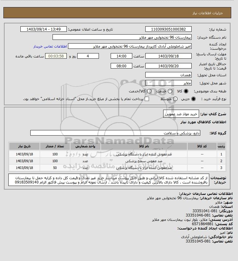 شرح کلی نیاز: خرید مواذ ضد عفونی