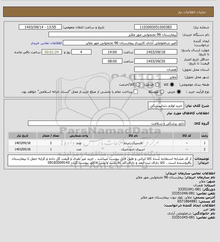 شرح کلی نیاز: خرید لوازم دندانپزشکی