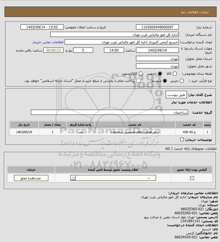 نام دستگاه خریدار:اداره کل امور مالیاتی غرب تهران
