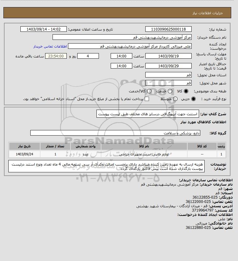 نام دستگاه خریدار:مرکز آموزشی درمانیشهیدبهشتی قم