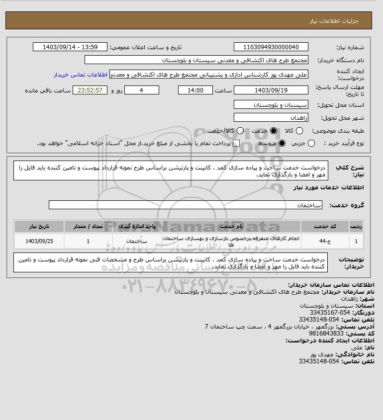 نام دستگاه خریدار:مجتمع طرح های اکتشافی و معدنی سیستان و بلوچستان