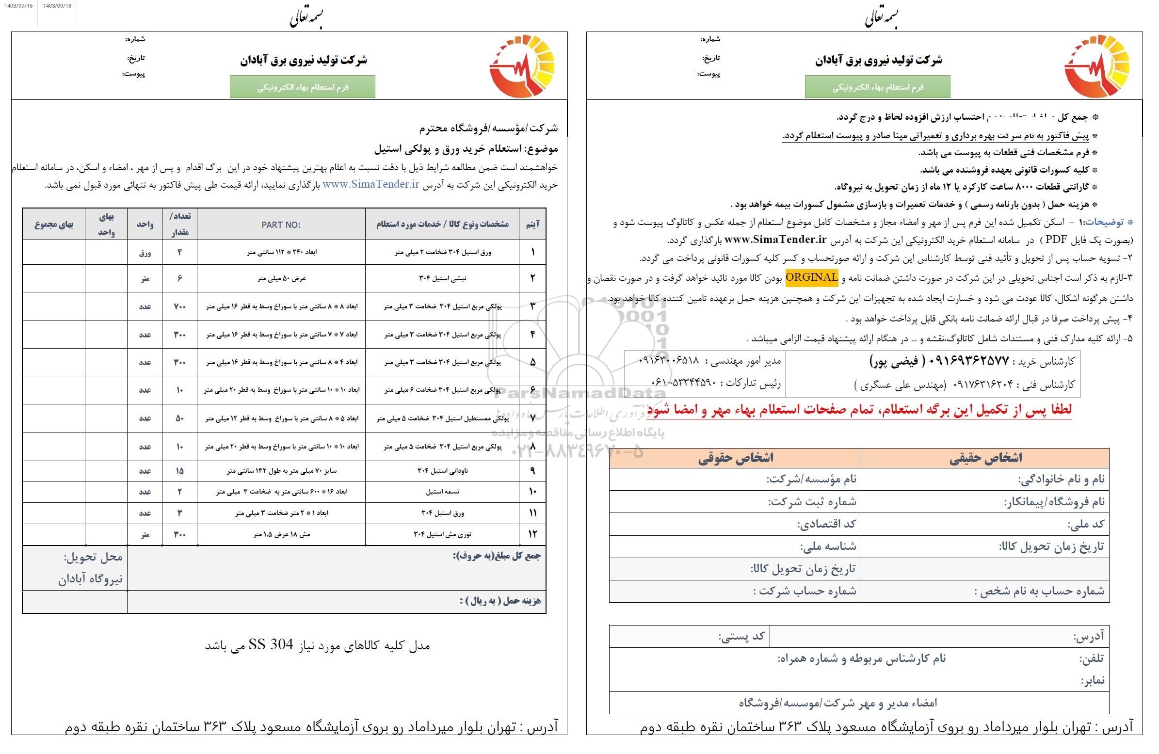 استعلام خرید ورق و پولکی استیل, استعلام خرید ورق و پولکی استیل