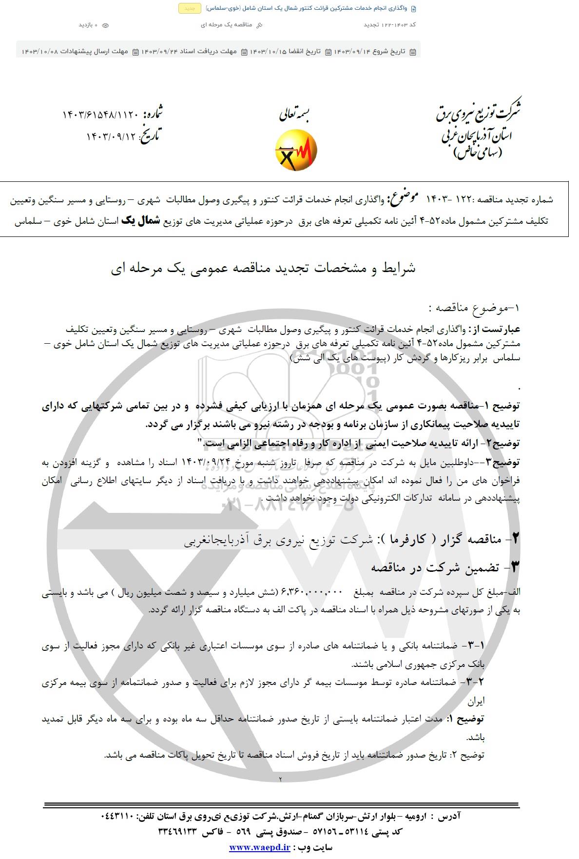 2- مناقصه گزار ( کارفرما) : شرکت توزیع نیروی برق آذربایجانغربی