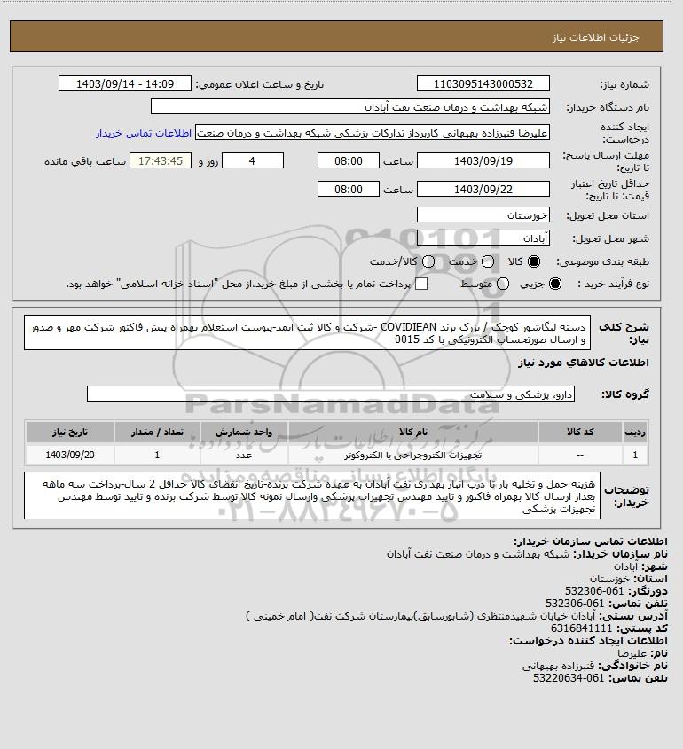 نام دستگاه خریدار:شبکه بهداشت و درمان صنعت نفت آبادان