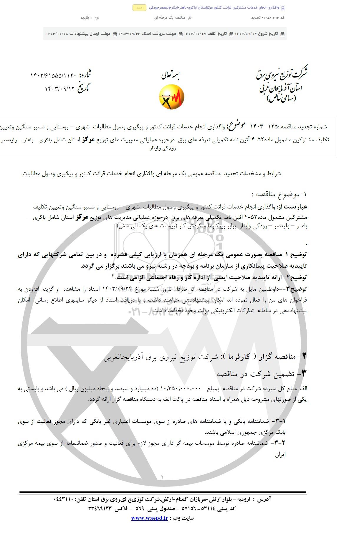 2- مناقصه گزار ( کارفرما) : شرکت توزیع نیروی برق آذربایجانغربی
