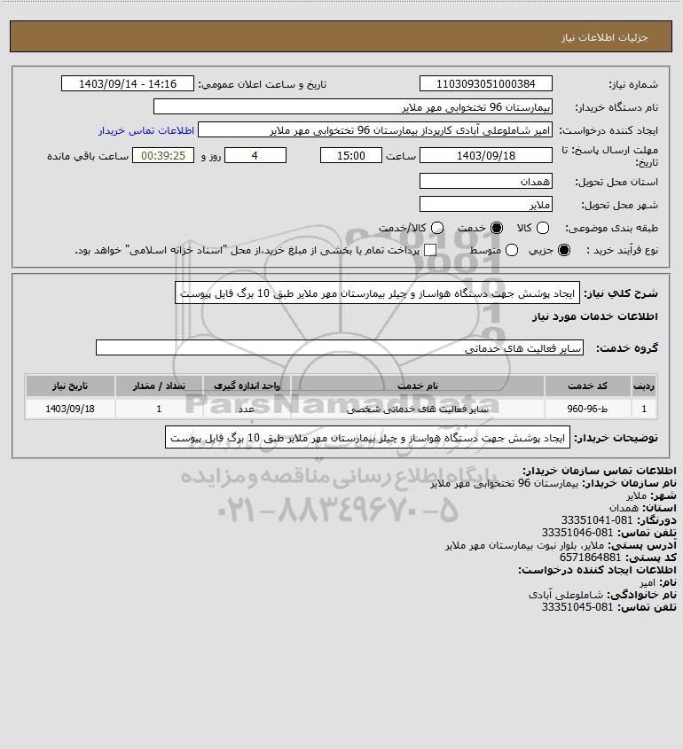 شرح کلی نیاز: ایجاد پوشش جهت دستگاه هواساز و چیلر بیمارستان مهر ملایر طبق 10 برگ فایل پیوست