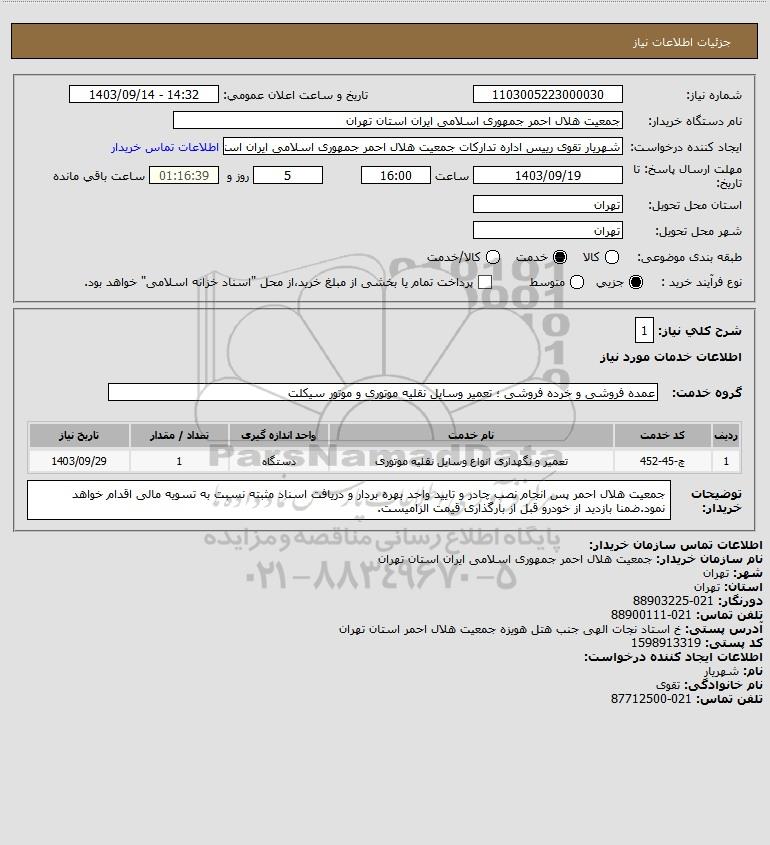 نام دستگاه خریدار:جمعیت هلال احمر جمهوری اسلامی ایران استان تهران