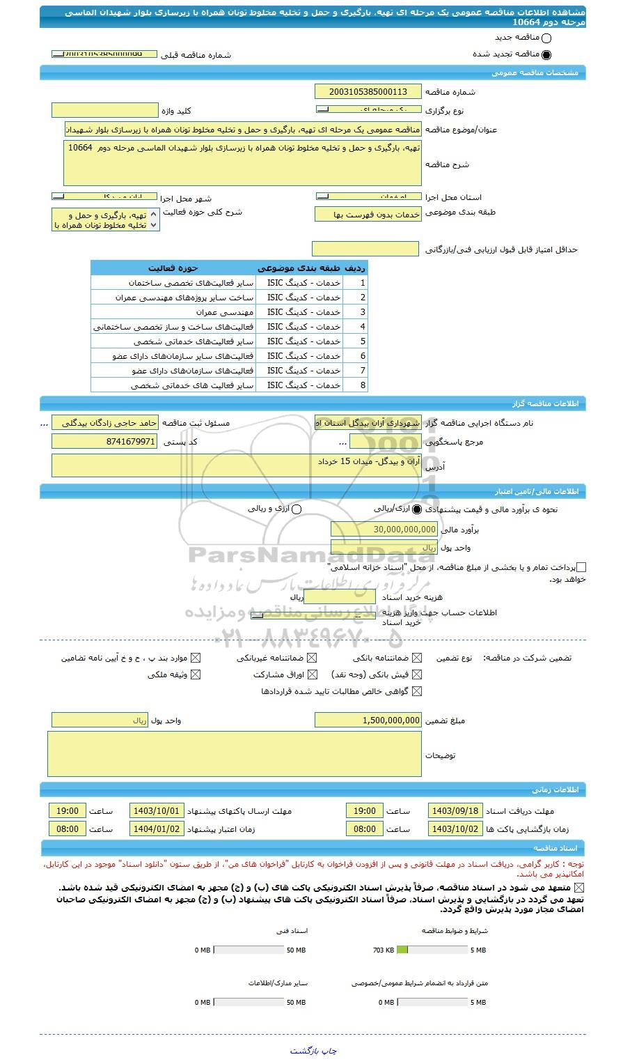 | مبلغ تضمین | 1,500,000,000 | واحد پول | ریال |