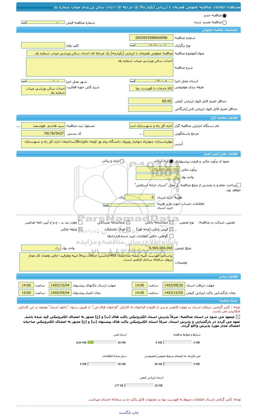 | مبلغ تضمین | 9,500,000,000 | واحد پول | ریال |